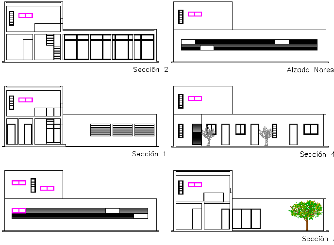 Section house plan detail dwg file, with landscaping detail in section 1 detail, section 2 detail, section 3 detail, section 4 detail, etc.
