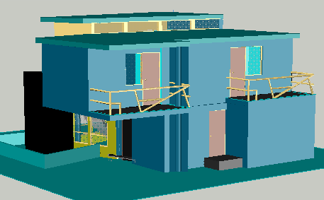 Family house 3 D plan detail dwg file, with balcony reeling detail, furniture detail in door and window detail, etc.