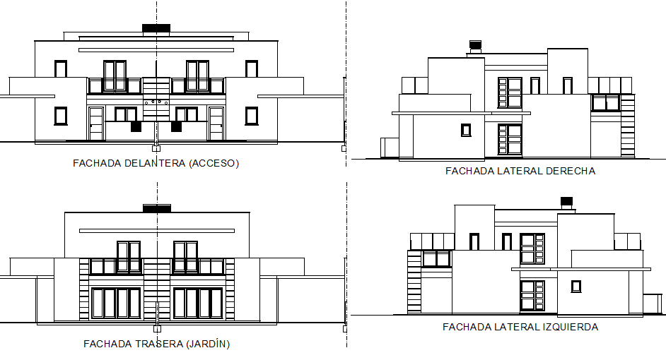 Elevation house plan detail dwg file, including front elevation plan detail, right elevation plan detail, left elevation plan detail, back elevation plan detail, etc.