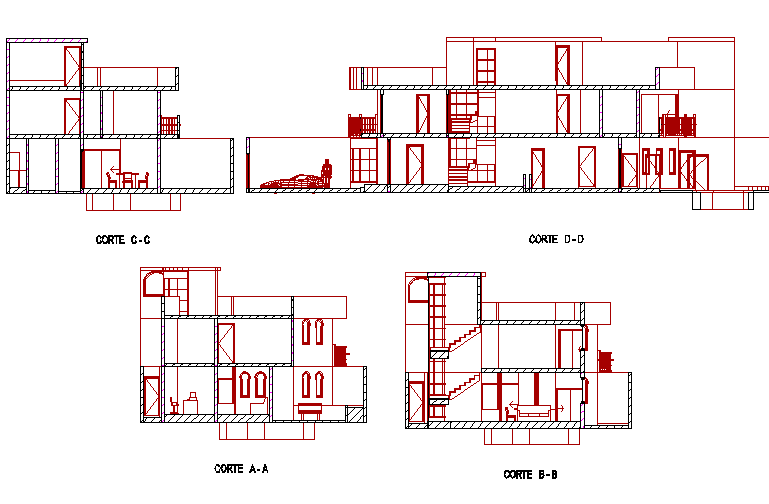 Section house plan detail dwg file, with section A-A’ detail, section B-B’ detail, section C-C’ detail, section D-D’ detail, table and chair detail, etc.
