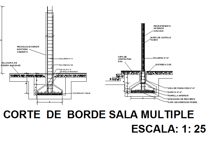 Foundation section plan detail dwg file, including reinforcement detail, blot nut detail, dimension detail, naming detail scale 1:25 detail, etc.