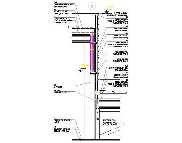 Facade section plan detail dwg file, including dimension detail, naming detail, etc.