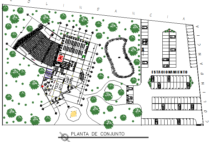Library building project plan detail dwg file, including swimming pool detail, landscaping detail in plant and tree detail, etc.