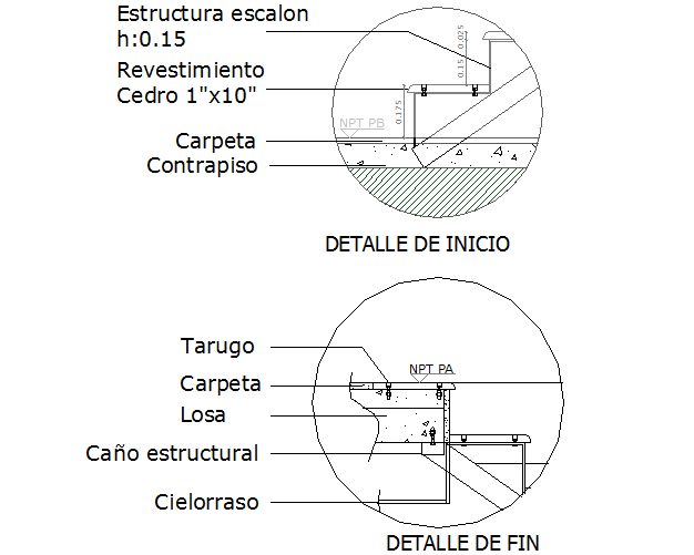 Riser and tread section detail dwg file, including naming detail, dimension detail, etc.