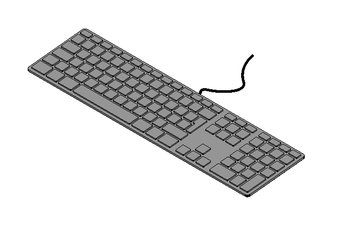 Soft touch keyboard 3d, here there is front detail of Soft touch keyboard 3d in auto cad format