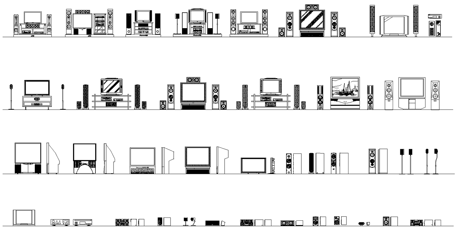 An entertainment system `for a home that usually considers of a large television with video components such as DVD player and VCR and an audio system offering surround sound. Detailed plans are shown here.