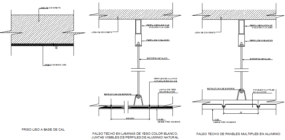 Showing Drop ceiling detail dwg file, including naming detail, dimension detail, etc.