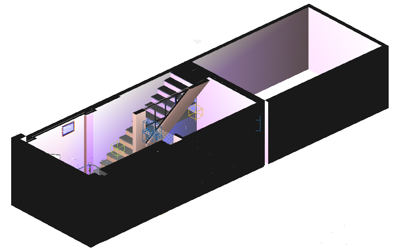 Duplex 3d view dwg file in 3d view with double portion of house with wall,stair view and wall support view.