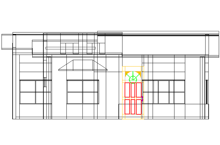 Front elevation detail dwg file, with furniture detail in door and window detail, parapet wall detail, etc.