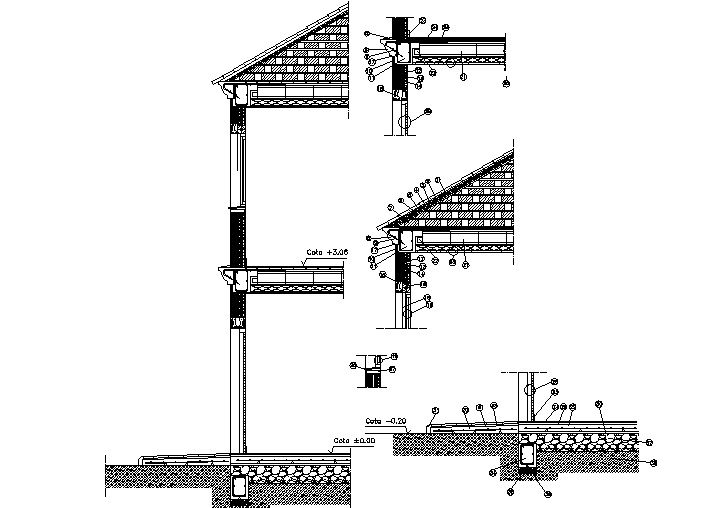 Constructive section cavity wall detail dwg file, with naming detail, specification detail, leveling detail, column detail, etc.