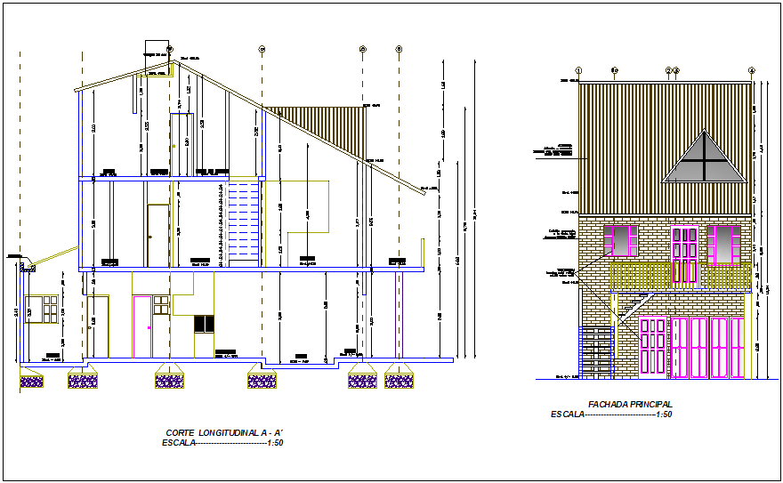 Section and elevation view of Columbia housing area dwg file in section with view of