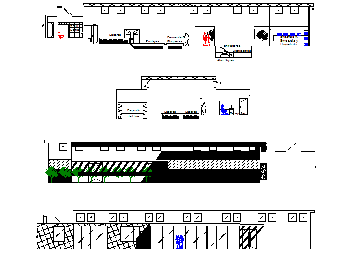 Section and elevation detail dwg file, including door and window detail, naming detail, landscaping detail in tree and plant detail, etc.