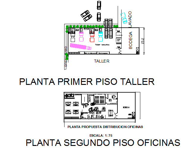 Industry project plan detail dwg file, with scale 1:75 detail, car parking detail, furniture detail in table, chair, door and window detail, etc.