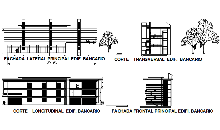 Elevation Industry project plan detail dwg file, including landscaping detail in tree detail, dimension detail, front elevation detail, side elevation detail, etc.