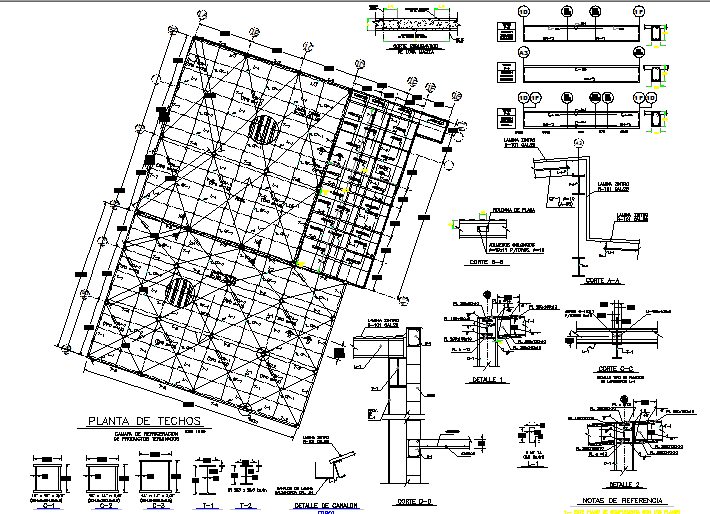 Roof plan detail dwg file, including dimension detail, naming detail, reinforcement detail, center line plan detail, etc.