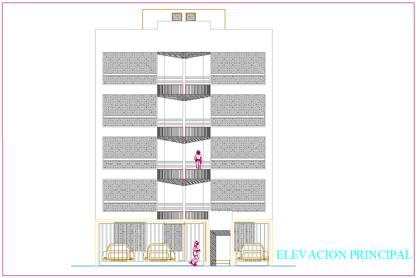 Elevation of apartment building dwg file in elevation with view of floor,floor level,wall,door and window view and view of wall and wall support view with necessary dimension.