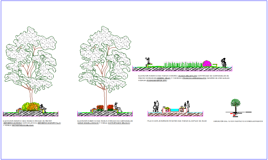 Block of tree sectional view for swimming pool dwg file in section view of tree with view of tree and seating benches under the tree with grass section view and other