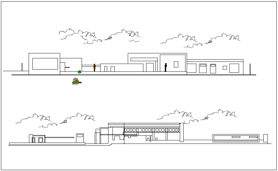 Elevation and section view of processing building plant dwg file in elevation with view of wall with wall supported view and section view.