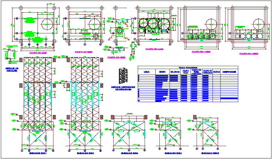 Steel structure plan and elevation for glucose processing equipment dwg file
