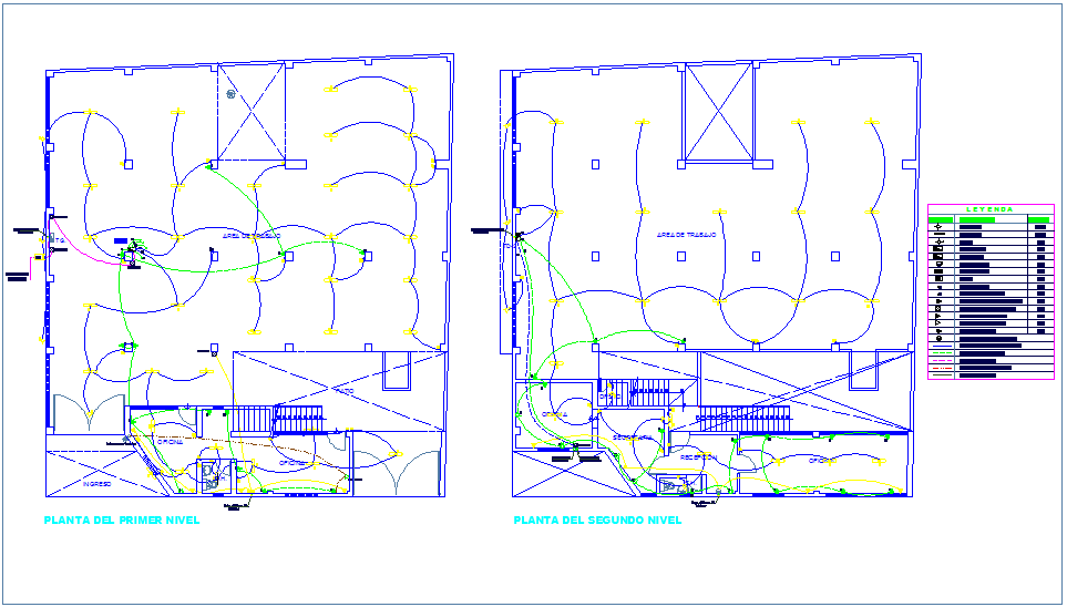 Electrical installation plan of textile manufacturing plant for first and second floor plan dwg file in plan with view of area view of plant with wall view and electrical line view with its connection and joint with its legend view and view of circuit of electrical system with necessary detail.