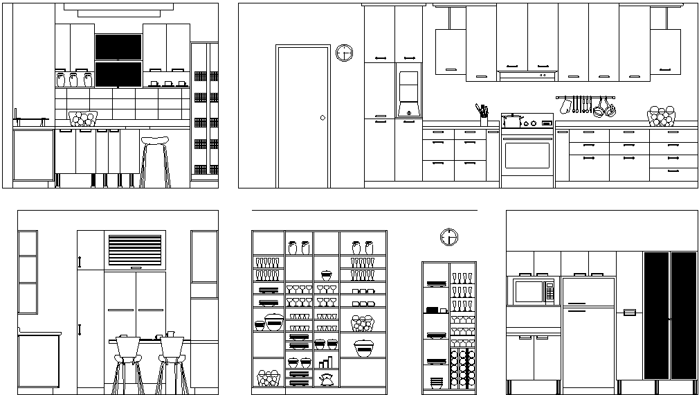 Sectional detail and elevation of a kitchen dwg file, tabletop design, front elevation of kitchen,all furniture details of kitchen is shown in auto cad format