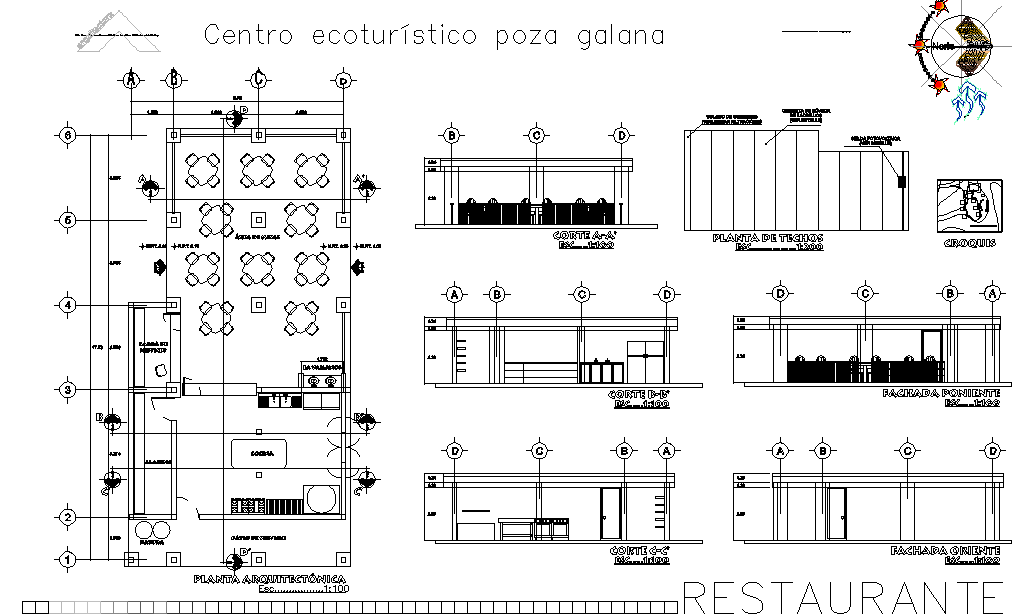 The elevation and section views highlight the building’s façade design, wall alignment, and functional proportions. These drawings provide a clear understanding of exterior appearance, material usage, and window positioning. The plan also includes designated spaces that can connect to visitor areas or outdoor parking zones, ensuring guest comfort and accessibility. The combination of furniture layout, service workflow design, and architectural detailing makes this file valuable for architects, interior designers, engineers, and professionals in hospitality planning. This DWG file offers a complete reference for developing efficient, visually appealing, and professionally planned restaurant environments suited for tourism and everyday dining.