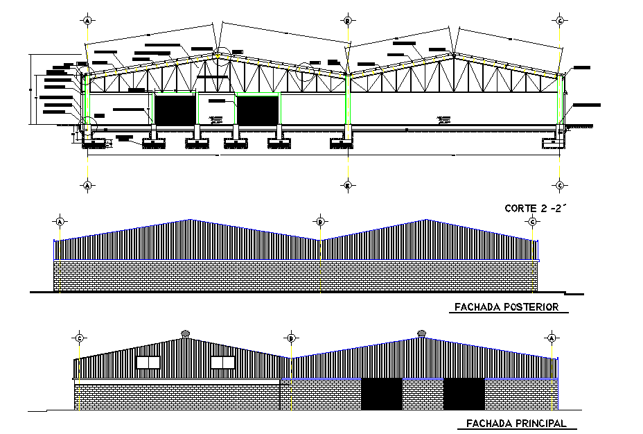 Front elevation and section detail dwg file, front elevation of a building is shown, sectional details, staircase view