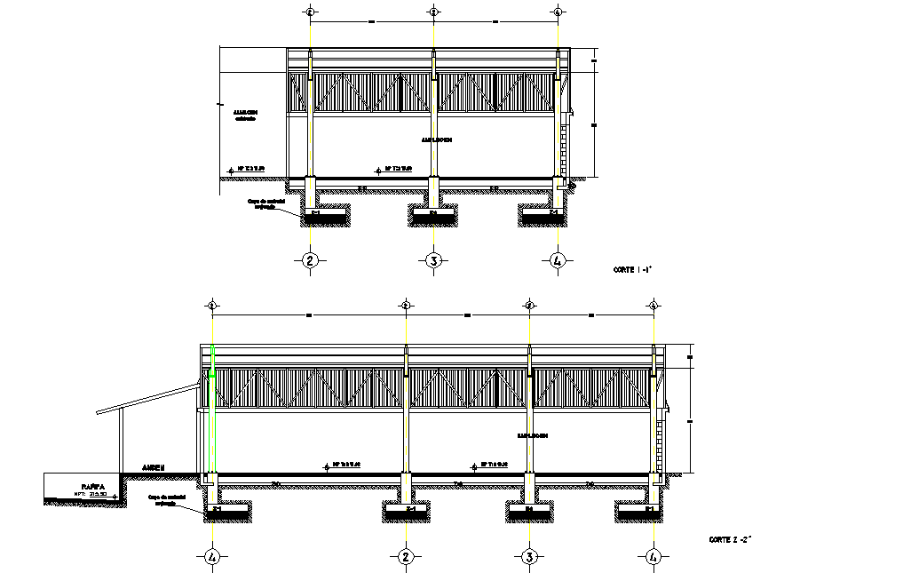 Sectional detail and elevation of a building dwg file, Big scale architectural project, complete furniture detailing is shownm, vast project design