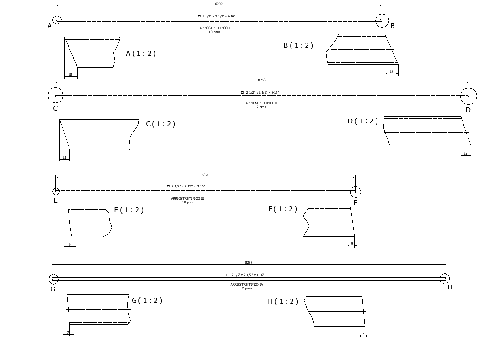 Beam section detail dwg file, with dimension detail, naming detail, section line detail, scale 1:2 detail, etc.