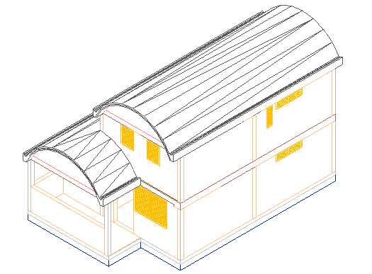 House two plants 3 D plan detail dwg file, including arc roof view detail, column detail, furniture detail in door and window detail, etc.