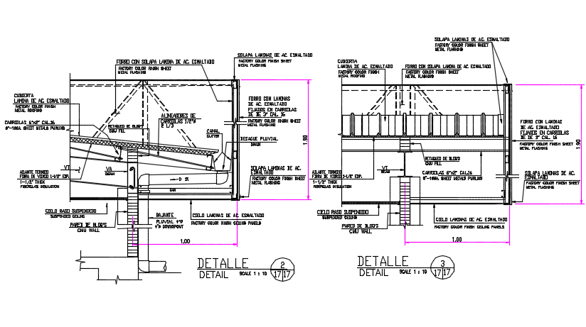 Roof detail dwg file, including dimension detail, naming detail, reinforcement detail, scale 1:10 detail, etc.