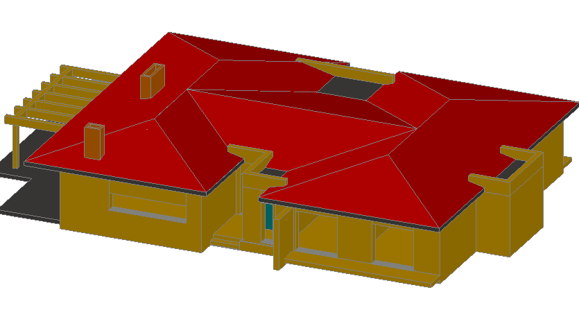 3 D housing plan detail dwg file, with parabola detail, chimney detail, etc.