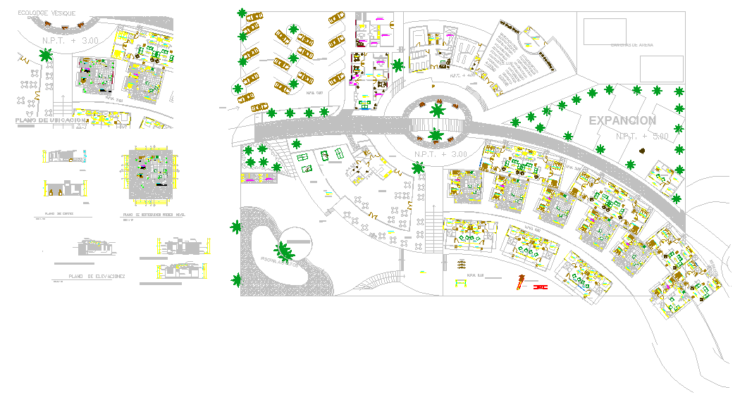 This town planning DWG project showcases a detailed urban development layout designed in AutoCAD. The plan includes residential housing blocks, road networks, parking areas, public spaces, and landscape zones, offering a complete view of a modern urban settlement. With clearly defined traffic circulation routes, green spaces, and structured residential plots, this design promotes sustainability and efficient land utilization. It also highlights zoning concepts, building placements, and pedestrian-friendly areas that ensure a balanced and organized living environment.