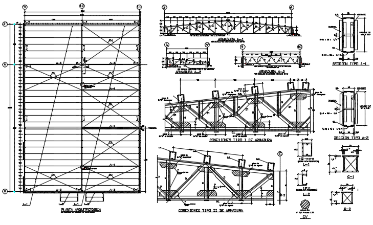 Detail of steel framing plan dwg file, including reinforcement detail, joint bolt nut detail, dimension detail, naming detail, etc.