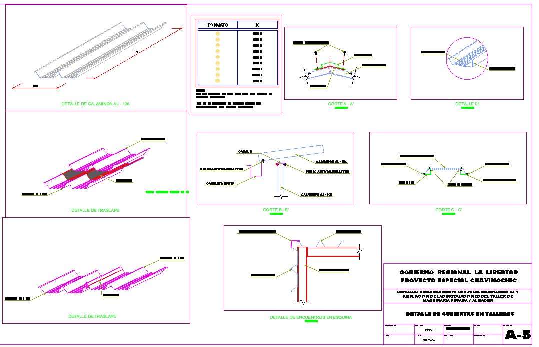 Roof section detail dwg file, with table specification detail, dimension detail, naming detail, column and beam joint detail, etc.