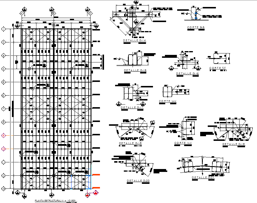 Structural plan detail dwg file, including section joint detail, centre line plan detail, dimension detail, naming detail, etc.