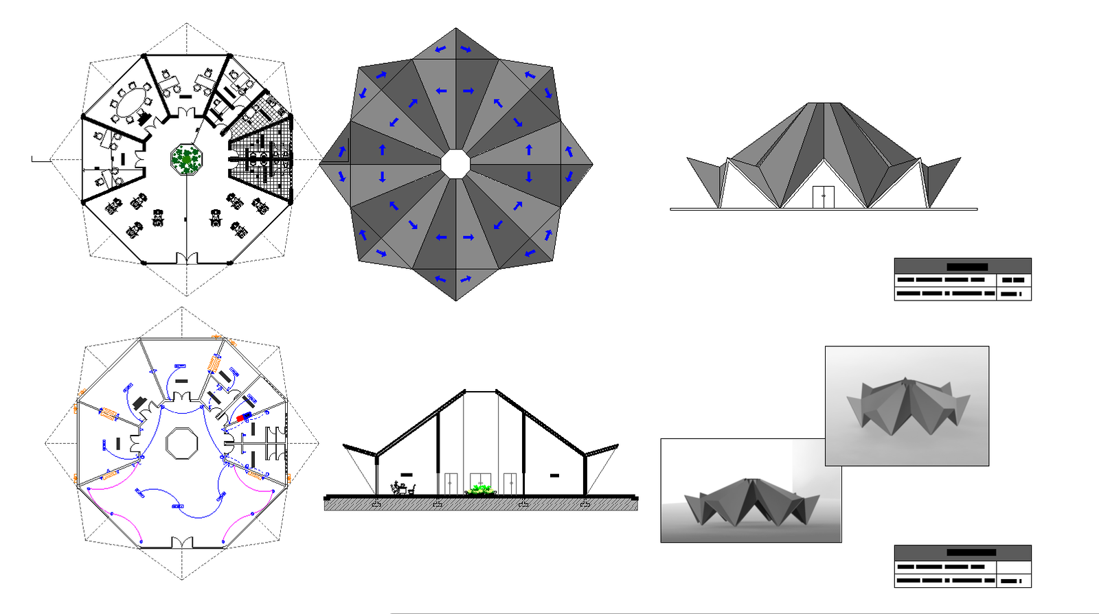 Automobile dealership plan in 2D AutoCAD. 3D plan with elevations is shown here with the detailed drawing.