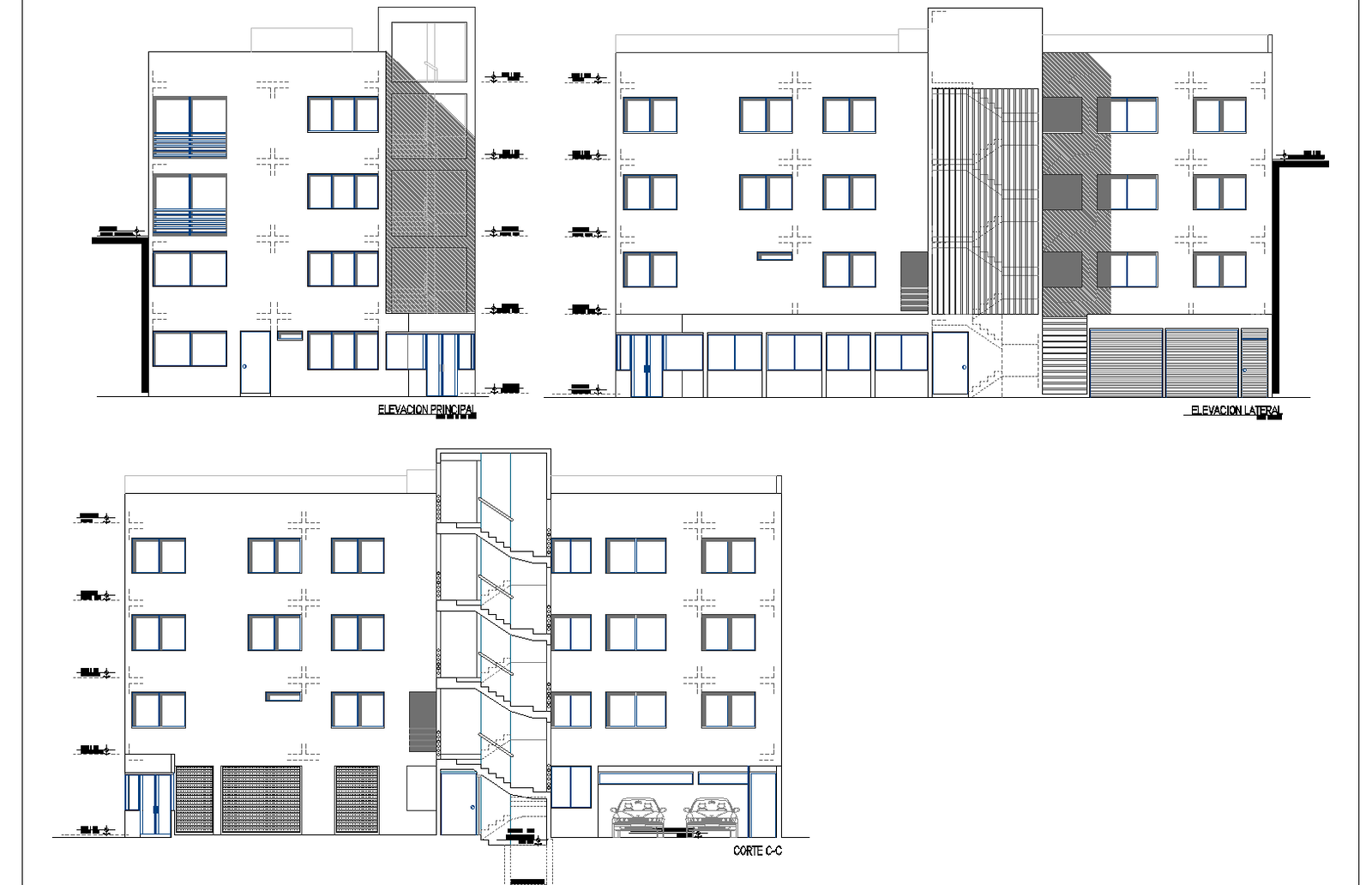 Supermarket project plan with roof area existent, roof area to demolish existent, roof area amplification, existing wall and demolishing a wall. 2D plan and elevation detailed drawing.