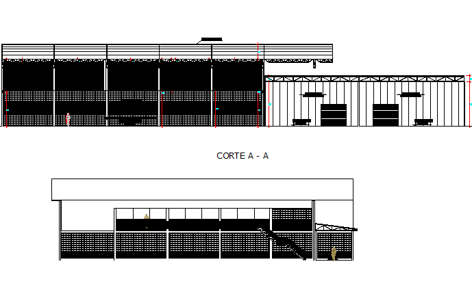 Section Processing plant detail dwg file, with section A-A’ detail, dimension detail, stair detail, steel framing detail, etc.