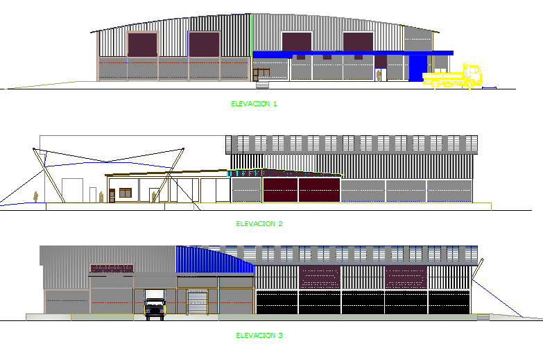 Processing plant elevation detail dwg file, including front elevation detail, side elevation detail, back elevation detail, etc.