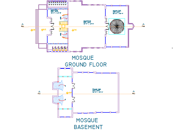 Basement plan and ground floor plan detail dwg file, with section line detail, toilet detail, levelling detail, etc.