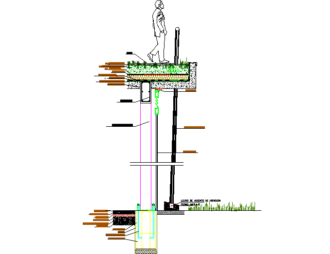 Fixture section plan detail dwg file, including naming detail, landscaping detail in grass detail, etc.
