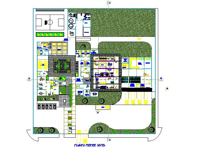 Planning Juice processing plant detail dwg file, including section line detail, landscaping detail tree and plant detail, car parking detail, cut out detail, etc.