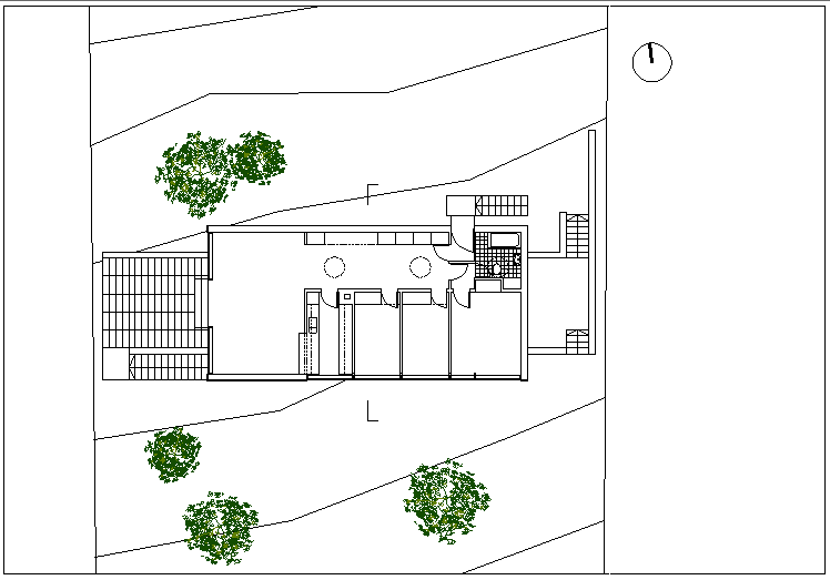 Plot layout plan detail dwg file, with landscaping detail in tree detail, stair detail, north direction detail, etc.