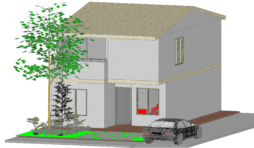 Family housing 3 d detail dwg file, including car parking detail, landscaping detail in tree and plant detail, balcony detail in reeling detail, door and window detail, etc.
