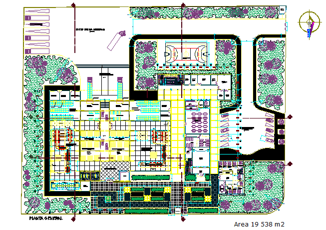 Planning Mangoes manufactures in Chiclayo detail dwg file, including north direction detail, truck parking detail, landscaping detail in tree and plant detail, section line detail, etc.