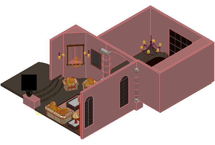 Furniture housing 3 d plan detail dwg file, with light lamp detail, sofa, bed, chair, table and door detail, stair detail, etc.