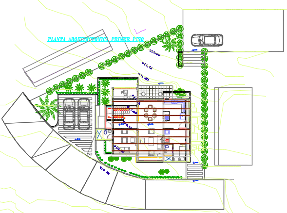 Planning house detail dwg file, including car parking detail, landscaping detail in tree and plant detail, stair detail, etc.