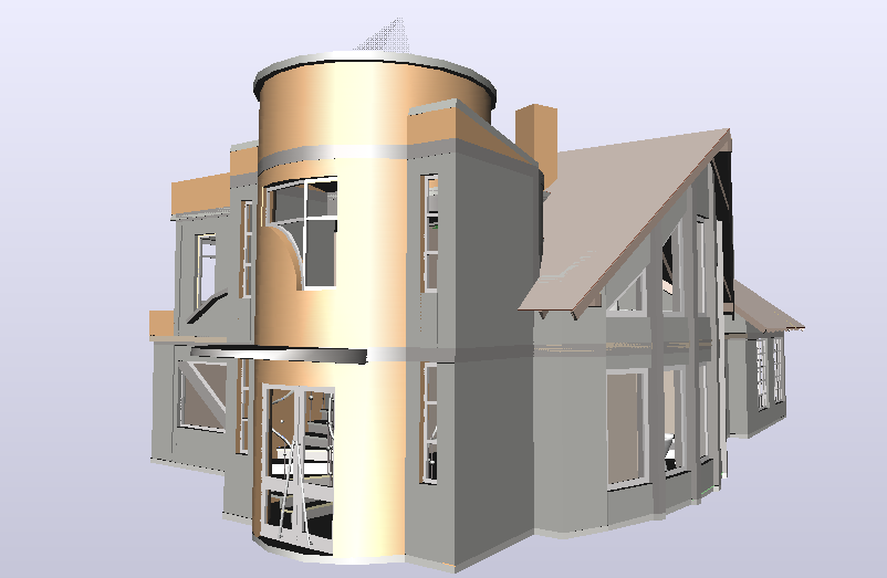 Bungalows design in 3d with architectural view dwg file in 3d view with cylindrical and