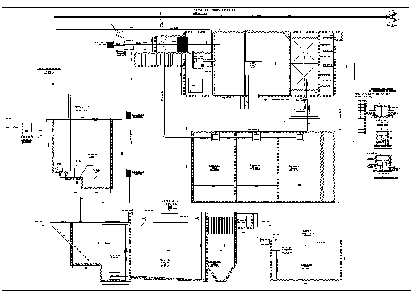 Chamber of liquid waste treatment. Plan with effluent treatment plant. Dimensional architectural plan with data. Every small detail is shown in the plan.